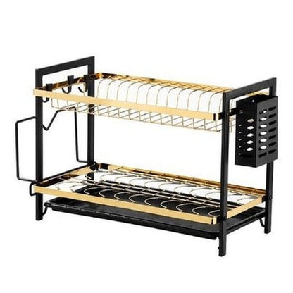 Upgrade your kitchen today with the superior quality of our 2-Tier Gold Dish Drying Rack!