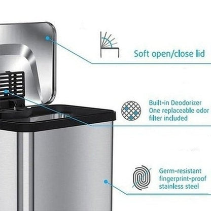 30L/50L Trash Can, Stainless Steel Dustbin with Pedal