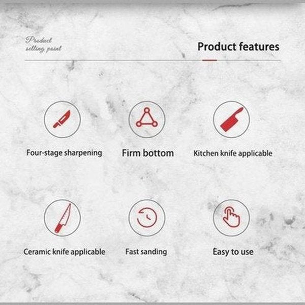 Imagine a world where your kitchen knives could slice through anything with precision and ease. That is exactly what the 4 Slot Electric Diamond Sharpener promises to deliver. With its electric diamond steel sharpener, this tool provides an effortless way to sharpen your ceramic knives and stainless-steel blades in seconds. Not only does it offer comprehensive knife sharpening features, but it also boasts eco-friendly benefits by reducing waste from disposable knife sharpeners or having to replace dull blades altogether. This electric sharpener includes four slots for honing different types of knives; a coarse grinding slot suitable for scissors and very blunt knives, a shaped abrasive tape slot which is ideal for serrated blades, a fine-grinding slot that perfects all kinds of edges, and an ultra-fine grinding stone used specially on ceramic knives, providing extreme sharpness every time you use them. Get your hands on the 4 Slot Electric Diamond Sharpener today and experience effortless yet precise slicing like never before while making an environmentally conscious choice!