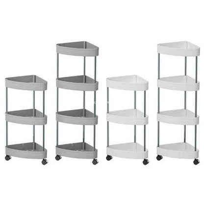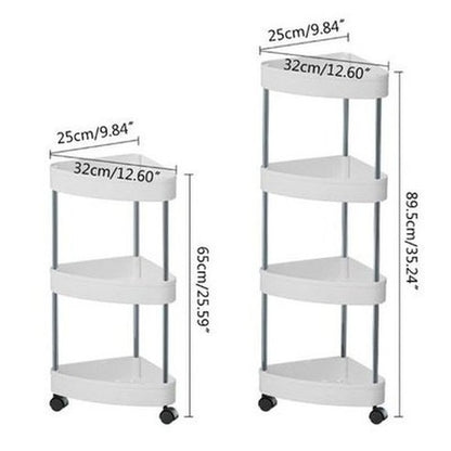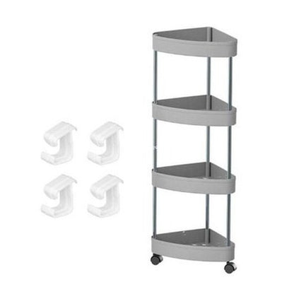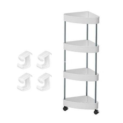 - Polyhedral corner shelves and stainless steel wheels for easy mobility