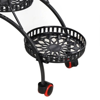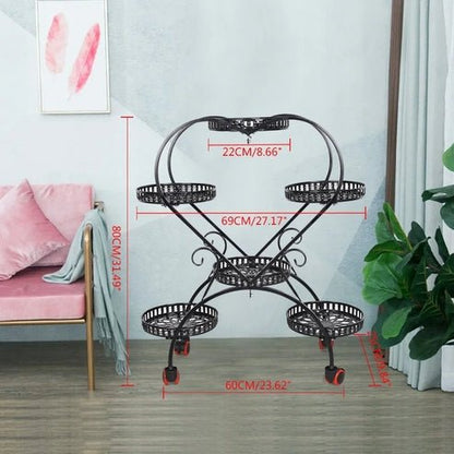 Black Metal Plant Stand with Wheels - A Heart-Shaped Haven for Your Greenery