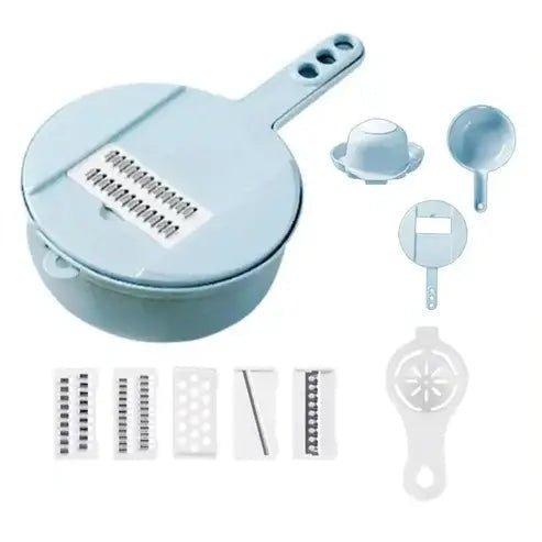 Introducing our 9-Piece Set Multi-Function Kitchen Manual Slicer, the ultimate tool for simplifying your food preparation tasks. This versatile slicer set comes with nine interchangeable blades, allowing you to effortlessly slice, dice, shred, and julienne a variety of ingredients with precision and ease.