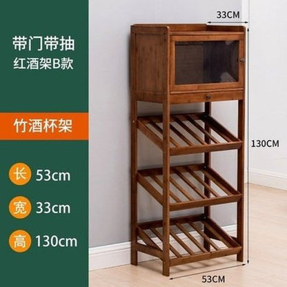 Bamboo With Door Red Wine Rack Landing Wine Bottle Stand Household Wine Cabinet Display Rack Upside Down Cup Holder