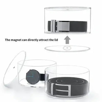 This Belt Storage Case is designed to keep your belts organized and easily accessible. Made from durable acrylic, it offers a transparent view, allowing you to easily locate the belt you want to wear without having to rummage through your wardrobe.
