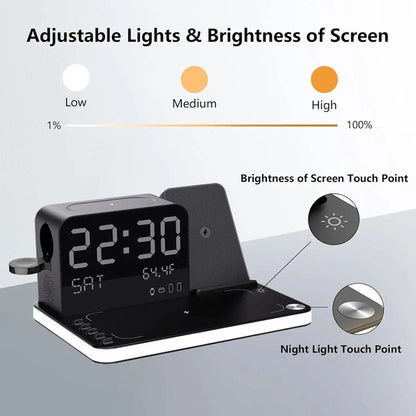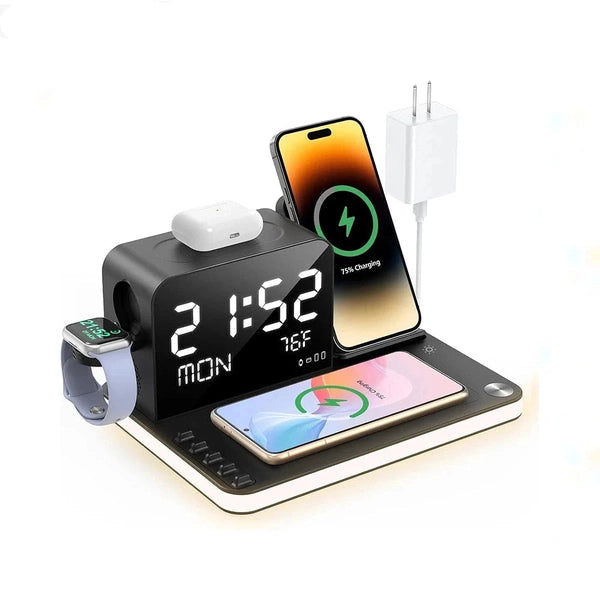 Say goodbye to tangled cords and cluttered nightstands with our 7-in-1 Wireless Charging Station. This versatile and efficient charging stand is designed to power up all your Apple devices simultaneously, including your iPhone, Apple Watch, and AirPods, while its sleek and modern design complements any space.