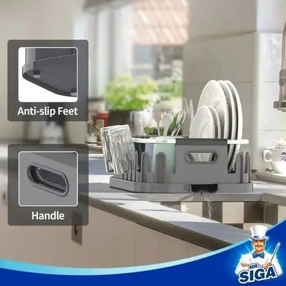 The MR.SIGA Compact Dish Drainer is a versatile kitchen essential designed to keep your dishes organized and your countertop dry.
