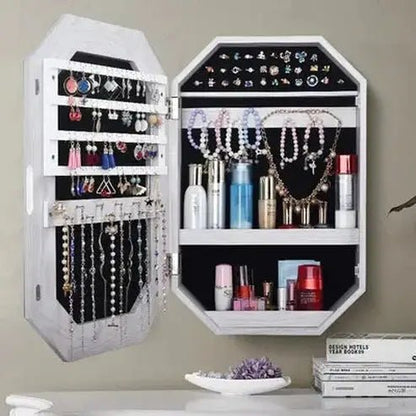 - Multi-Functional Design: Combining a cosmetic storage cabinet, a practical makeup mirror, decorative photo frame, and jewelry storage, this cabinet serves as a versatile all-in-one solution.