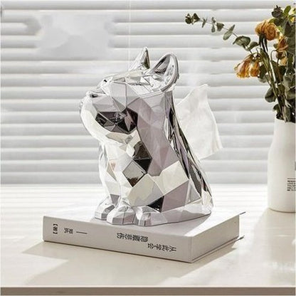 Decorative Tissue Box Bathroom Tissue Box Large Opening Design Light Luxury French Bulldog Electroplated Tissue Dispenser
