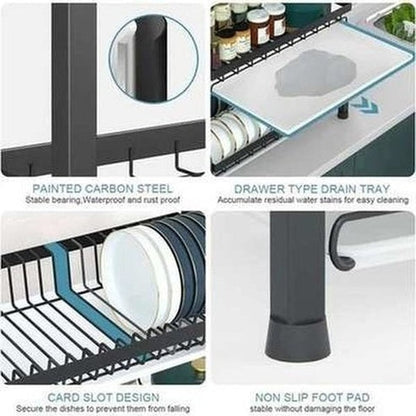 - Durable Construction: Made from sturdy metal, this dish drainer is built to withstand daily use and resist rust and corrosion. Its sleek and modern design adds a touch of elegance to any kitchen decor.
