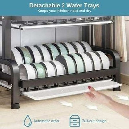 - Kitchen Organizer: In addition to drying dishes, this versatile drainer doubles as a kitchen countertop organizer. It provides separate compartments for plates, bowls, cups, and cutlery, keeping everything neatly organized and easily accessible.