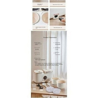 - Prepare delicious meals for 3–4 people effortlessly using our Double Gallbladder Intelligent Rice Cooker, equipped with a Mini Multi-function design and spacious 2L+2L capacity