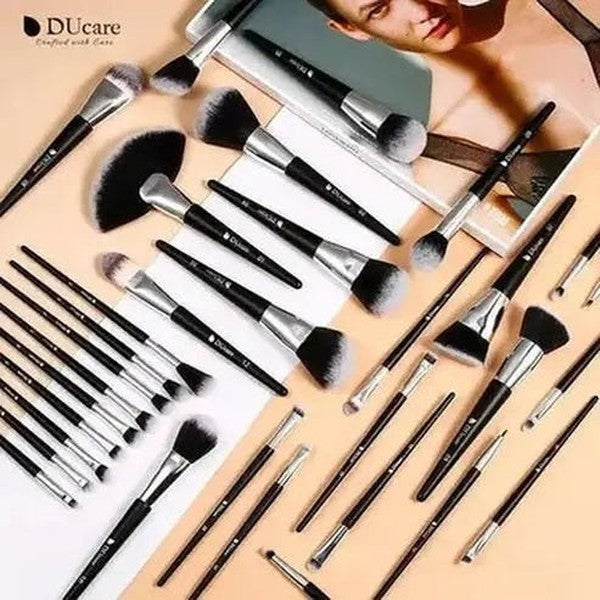 Indulge in perfection with DUcare's professional makeup brush set. Experience the luxury of synthetic hair craftsmanship as this 32-piece kit encompasses everything from foundation to powders, eyeshadows, and blending. Elevate your makeup routine with tools designed for flawless application.