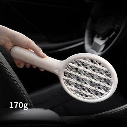 Introducing the Mini Electric Fly Swatter Racket with Light! Say goodbye to pesky bugs and mosquitoes with this handheld bug zapper. With its rechargeable battery and 3-layer electric grid, it's the ultimate weapon against flying insects.