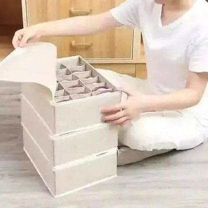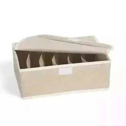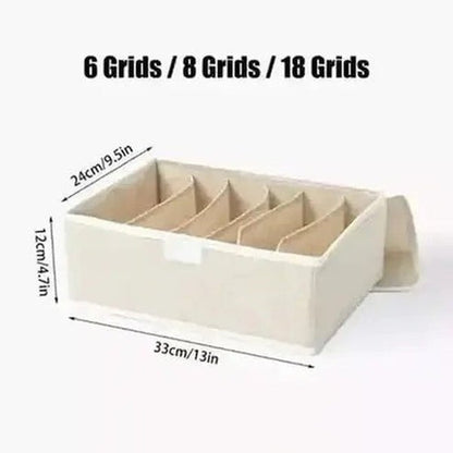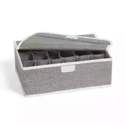 Heavy-duty Fabric Underwear Storage Box with Lid. High-quality with 18 grids for Socks, Bras, Panties, Foldable & Washable. Type: Household Storage Containers.
