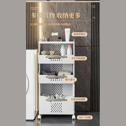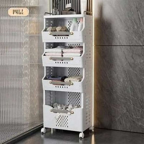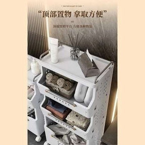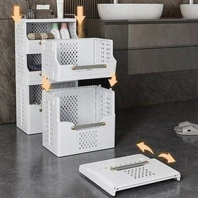 Effortlessly organize your home with our foldable multi-layer storage rack - the perfect solution for a stylish and spacious bathroom, kitchen, or laundry room.