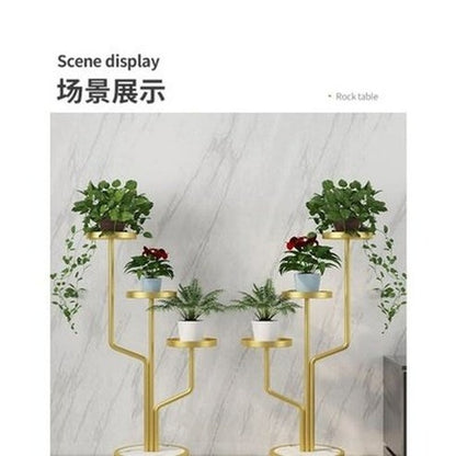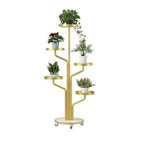 Elevate your indoor space with the Gold Modern Five Tier Planter. This contemporary iron flower pot frame effortlessly showcases balcony fleshy plants, providing ample storage for sundries in your living room. Crafted from eco-friendly metal materials sourced from mainland China, this non-folding rack is the perfect addition to any modern living space.