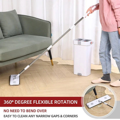 Keep your floors spotless with this Hand-Free Flat Mop and Squeeze Bucket Set. The innovative hands-free design allows for easy wringing, keeping your hands dry and clean. Equipped with microfiber mop pads, it effectively picks up dirt, dust, and spills. The multifunctional bucket offers dual compartments for washing and drying, ensuring a streak-free finish. Perfect for hardwood, tile, laminate, and more, this mop system makes cleaning faster and more convenient.