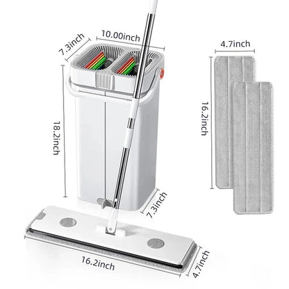 Hand-Free Flat Mop with Squeeze Bucket
