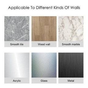- Easy installation on uneven surfaces like tiles, marble, glass, frosted glass, metal, and solid wood without drilling