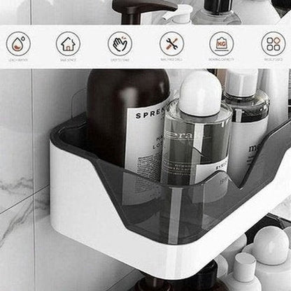 Introducing our Hanging Shower Storage Shelf, the epitome of functionality and style. This wall-mounted organizer combines sleek and modern design with reliable storage solutions for your makeup table essentials, kitchen, and bathroom accessories. With its strong load capacity, this sturdy adhesive hanger effortlessly adapts to uneven or smooth surfaces like tiles, marble, glass, frosted glass, metal, or solid wood.