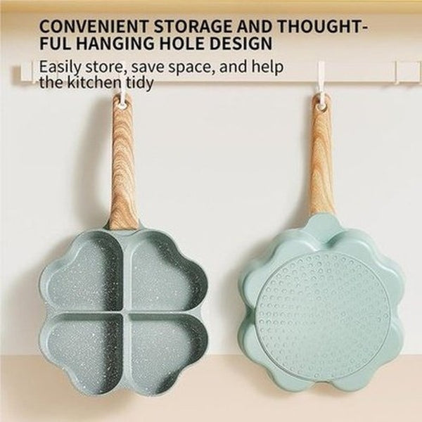 Four hole design: different from the ordinary frying pan, the egg frying pan adopts the 4 cup design, which can fry four eggs or different hamburgers or four different foods at the same time to meet the daily breakfast needs of ordinary families.