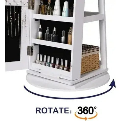The Reflections in Rotation Armoire - Decorative and Functional, with its 360° Rotating Light and Full-Length Mirror Door, Enhances Any Home Space and Offers the Ultimate in Jewelry Storage. A sophisticated addition to any home, this armoire is both decorative and functional with its 360° rotating light and full-length mirror door, making it the perfect choice for stylish jewelry storage.Specifications: