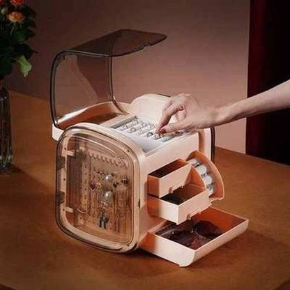 Introducing our innovative Jewelry Storage Box Display Rack Nail Polish Dresser Organizer - the perfect solution to keep your precious jewelry and cosmetics organized and easily accessible!