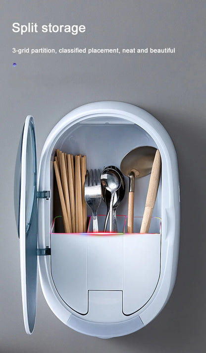 Ensure clean and safe tableware with this Kitchen Tableware Sterilizer. Featuring USB-powered disinfection technology, it effectively sanitizes chopsticks, dishes, and utensils. The large-capacity storage box provides ample space to organize cutlery while maintaining hygiene. Its sleek and modern design complements any kitchen décor, making it an essential addition to your home.