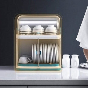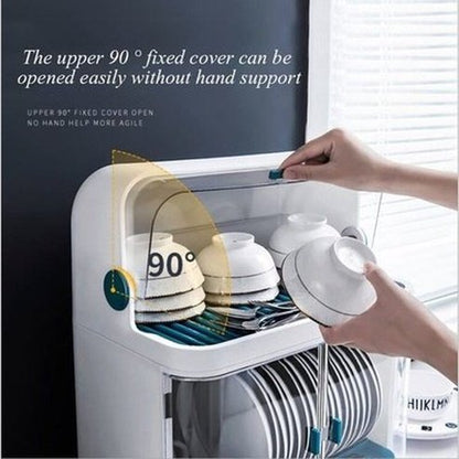 Double layer kitchen dish and utensil storage drain box with lid. Plate bowl cups spoon storage rack drainer plastic dish drying rack kitchen drainer dish drainer with cover