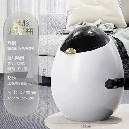 Upgrade your space with this stylish and functional Light Luxury Egg-Shaped Trash Can. With its double barrel design, this trash can is not only aesthetically pleasing but also highly practical.