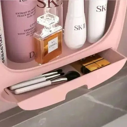 Organize your makeup collection with the Sturdy Wall Hanging Makeup Storage Box. This drawer-type bathroom makeup organizer is crafted from durable ABS plastic, ensuring longevity and a fashionable appearance.