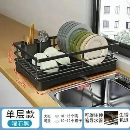 Metal Countertop Dish Storage Rack with Drainage Plate
