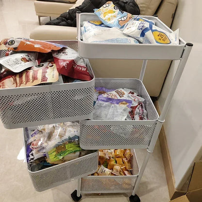 Multi-Functional Rotating Kitchen Trolley - Your Mobile Storage Solution