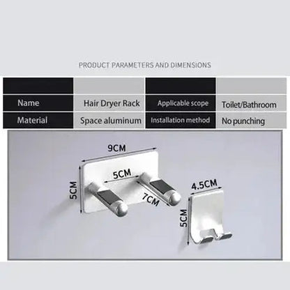 No Drilling Metal Wall-Mounted Hair Dryer Holder