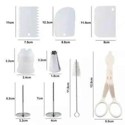 Baking Tools Accessories: Includes essential tools such as spatulas, smoothing tools, and piping bags for professional-quality cake decorating.