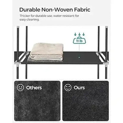 - Support and Durability: Crafted with 0.6-inch diameter metal tubes and 120 g/m² non-woven fabric, ensuring robustness. The hanging rail supports up to 33 lbs., while each shelf supports 11 lbs.