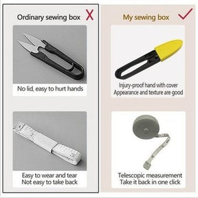 The sewing kit contains most of the essentials you may need for sewing and repairing.
