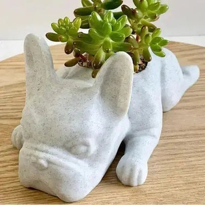 Waterproof resin French Bulldog succulent planter ornaments, crafted as mini dog-shaped planters, ideal for decorating your garden or lawn. Perfect as a Christmas gift.