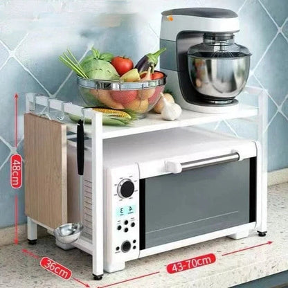 Maximize your kitchen counter space and keep your essentials organized with our Retractable Microwave Oven Rack. This versatile and durable storage shelf features a two-tier design, adjustable width, and a sturdy construction, making it perfect for your microwave, oven, or other kitchen appliances.