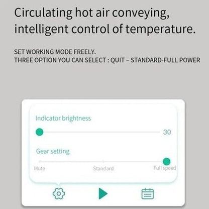 Quick drying to keep warm no fear of rain and snow The PTC heating plate, uni form heating, the temperature control in 40 °, the shoes material and glue does not have any effect. Circulating hot air conveying, intelligent control of temperature. SET WORKING MODE FREELY. THREE OPTION YOU CAN SELECT: QUIT STANDARD-FULL POWER