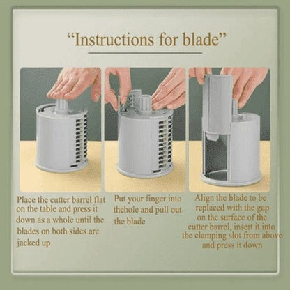 - The Rotary Kitchen Slicer is a multifunctional tool, allowing you to effortlessly grind, slice, and shred various ingredients