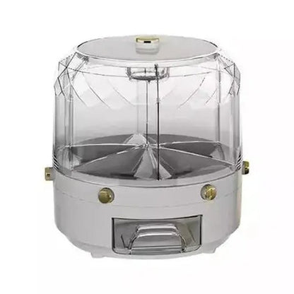 Upgrade your kitchen storage with the clear 6-bin rotating rice dispenser storage bucket, and enjoy the convenience and efficiency it brings to your daily cooking and meal preparation!