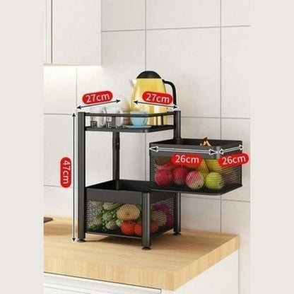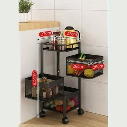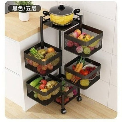 Elevate your kitchen organization with our Rotating Storage Kitchen Shelves, combining functionality and style for a more efficient and aesthetically pleasing kitchen.. Streamline your kitchen organization with Rotating Storage Kitchen Shelves. These shelves offer effortless 360° rotation, allowing you to access items from any angle. Crafted from durable carbon steel, they provide ample storage for fruits and vegetables while enhancing your kitchen's functionality. With lockable wheels for mobility and stability, these shelves are a high-quality solution for optimizing your kitchen space. Say goodbye to kitchen clutter and hello to convenient and stylish organization.