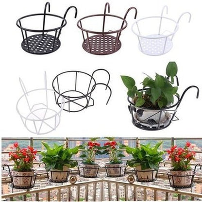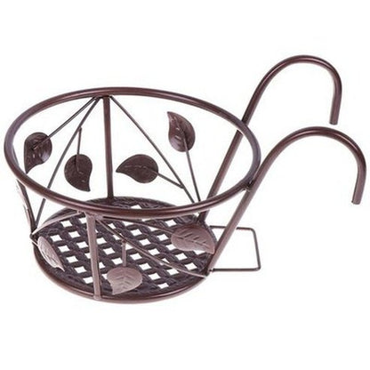 Round Hanging Iron Pot For Outdoor Use. 5 Style Outdoor Hanging Basket Iron Plant Racks Fence Balcony Round Flower Pot Decoration Garden Supplies Home Decor