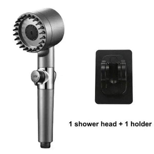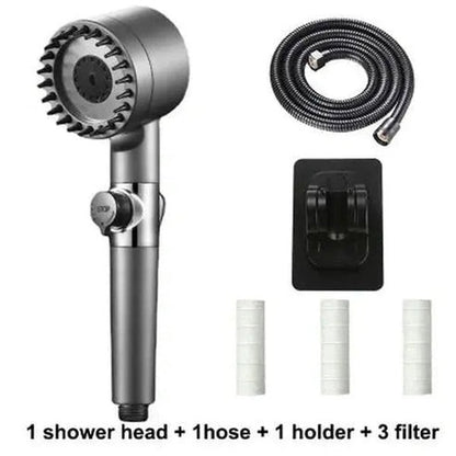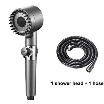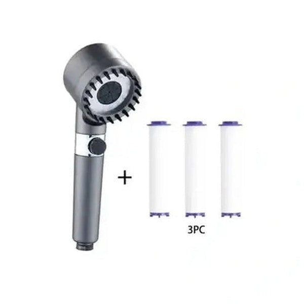 «The High-Pressure 3-Mode Shower Head» offers an elevated bathing experience, providing customization, durability, and efficiency. Originating from Mainland China, this innovative shower head features three modes catering to individual preferences, crafted from high-quality materials such as ABS plastic, stainless steel, and brass for durability and longevity. Its water-saving efficiency maintains a superior shower experience without compromising environmental responsibility. With a massage head function for relaxation, family-friendly design, and hygienic filtration, it ensures a safe and comfortable bathing environment for users of all ages. Convenient installation and versatile use make it a practical and user-friendly addition to any bathroom. Experience a spa-like relaxation and efficient showering with this versatile, durable, and eco-conscious «High-Pressure 3-Mode Shower Head».