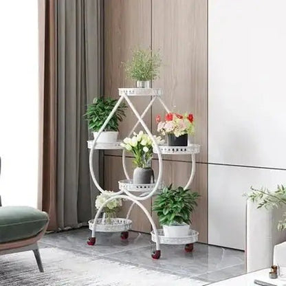 Mobile: Equipped with wheels, the plant stand can be easily moved around your home or garden, allowing you to find the perfect spot for your plants.
