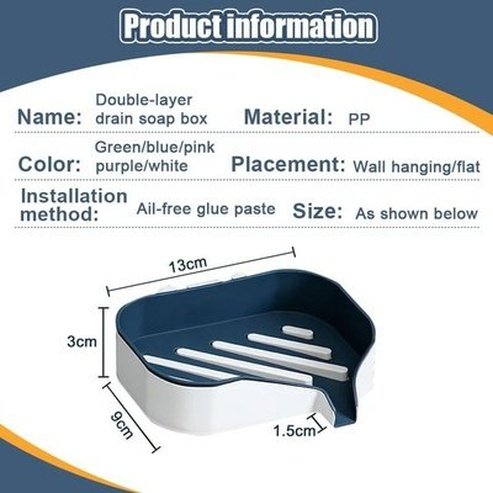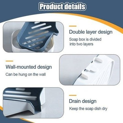 Introducing our innovative Adhesive Wall Soap Box, designed to revolutionize your bathroom or kitchen storage experience. This multipurpose soap dish drainer serves as an efficient water drain soap dish tray, ensuring that your soaps remain dry and intact for longer periods of time. Its ingenious super suction cup container adheres firmly to any wall surface, providing a secure and space-saving solution for all your bathroom and kitchen essentials. Say goodbye to cluttered countertops and hello to organized bliss with this must-have accessory from our collection of top-notch storage accessories.