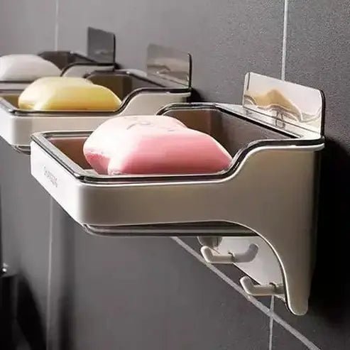 Waterproof wall-mounted soap dish with hooks for storing towels. Shower wall mounted soap dish, bathroom bathtub drain, water soap box, soap box.