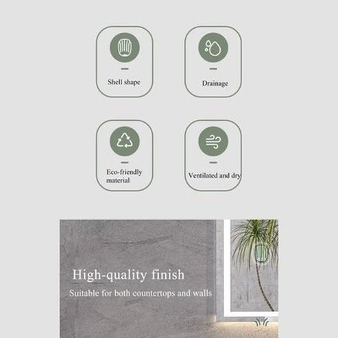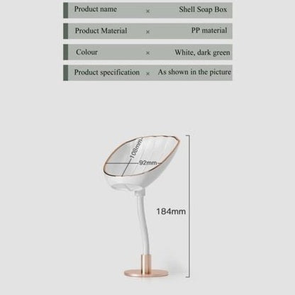 Shell shape design, fast evacuation, environmentally friendly material, ventilation and dryness, countertop and wall can be used, suitable for all types of soap and soap, size will not fall off, can be adjusted to all angles, storage and pick up convenient, pick up the way unobstructed, internal convex lines design, multi-scene applicable