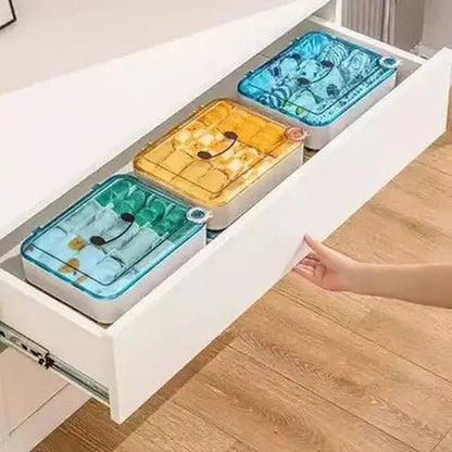 Sturdy cartoon home storage box for socks with cover. Multi-use underwear compartment. Sock Organizer Shelf for Nightstand Drawer. Type: Household Storage Containers